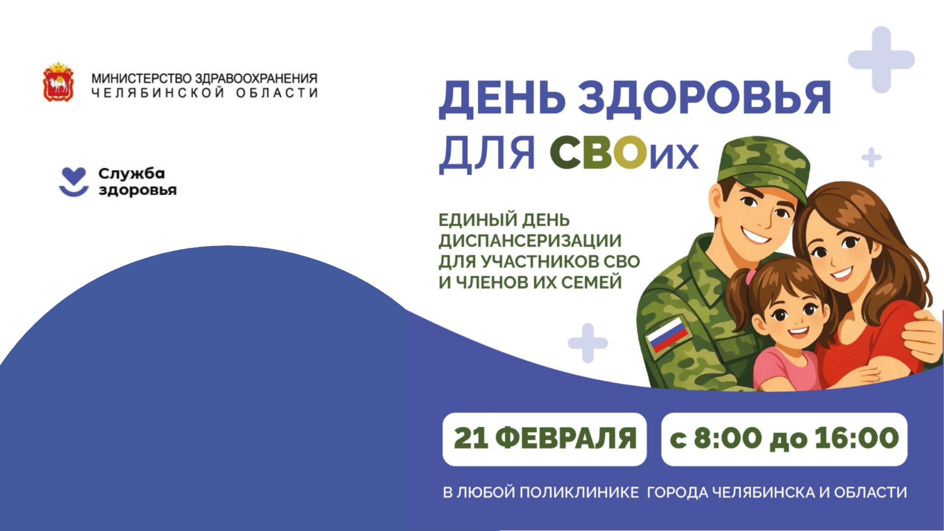 В субботу 21 февраля приглашаем в поликлиники ГАУЗ ГБ №3 ветеранов боевых действий из числа участников специальной военной операции и членов их семей, а также работающее население проверить здоровье.